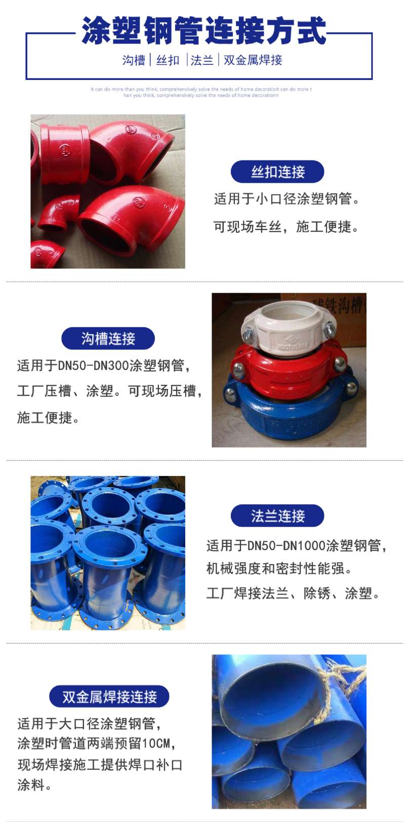 更多的海內(nèi)外朋友關(guān)注和融入友誠管道的發(fā)展中去,和我們同心協(xié)力把產(chǎn)業(yè)推向前進,成就我們每個人的遠大抱負、宏偉理想和更精彩的人生!熱忱歡迎各新老朋友與我公司合作雙贏、共同發(fā)展。大數(shù)據(jù)網(wǎng)絡(luò)時代誠信是商業(yè)的命脈,友誠管業(yè)有限公司專業(yè)生產(chǎn)溝槽連接涂塑螺旋鋼管—給排水涂塑鋼管、鋼塑復(fù)合管、涂塑鋼管給排水、循環(huán)水用涂環(huán)氧復(fù)合鋼管為鋼管內(nèi)外壁采用環(huán)氧樹脂粉末涂料進行涂敷的給水復(fù)合管道。內(nèi)壁具有很強的耐腐蝕性及良好的耐化學(xué)穩(wěn)定性,能輸送-30℃-90℃的流體介質(zhì)。經(jīng)檢驗,符合生活飲用水、輸水配水安全性能標準。用品牌占領(lǐng)市場,用真誠服務(wù)客戶,用創(chuàng)新鑄就未來,用專業(yè)永恒質(zhì)量。